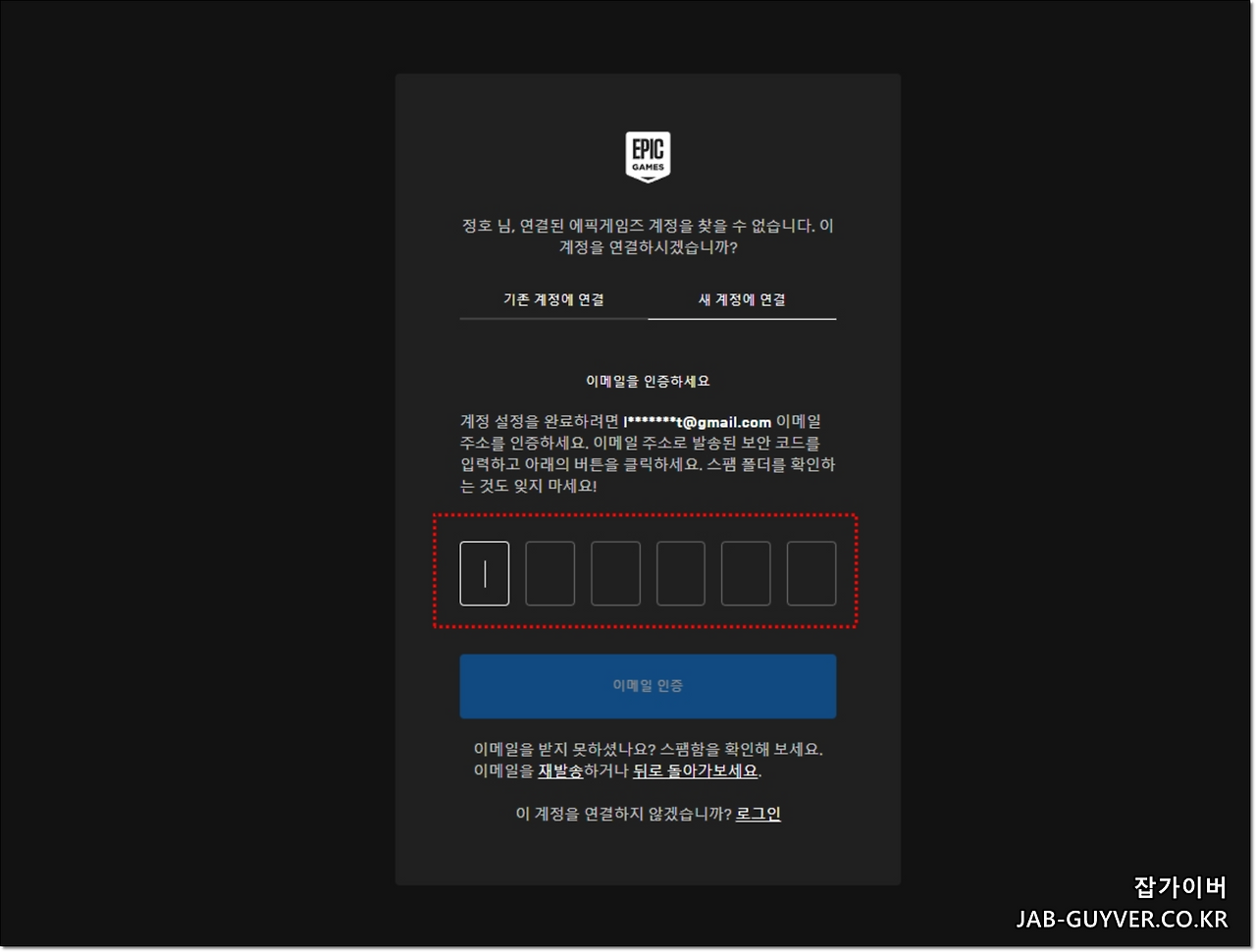 마지막으로 메일주소로 전달되는 인증코드를 입력합니다.