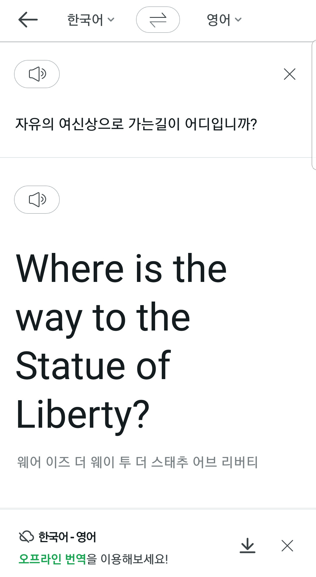 언어팩만 다운받으면, 언제 어디서나 번역이 가능합니다. 오프라인 번역기능을 사용하시려면 파파고 앱을 꼭 다운로드 받거나 업데이트해주세요.