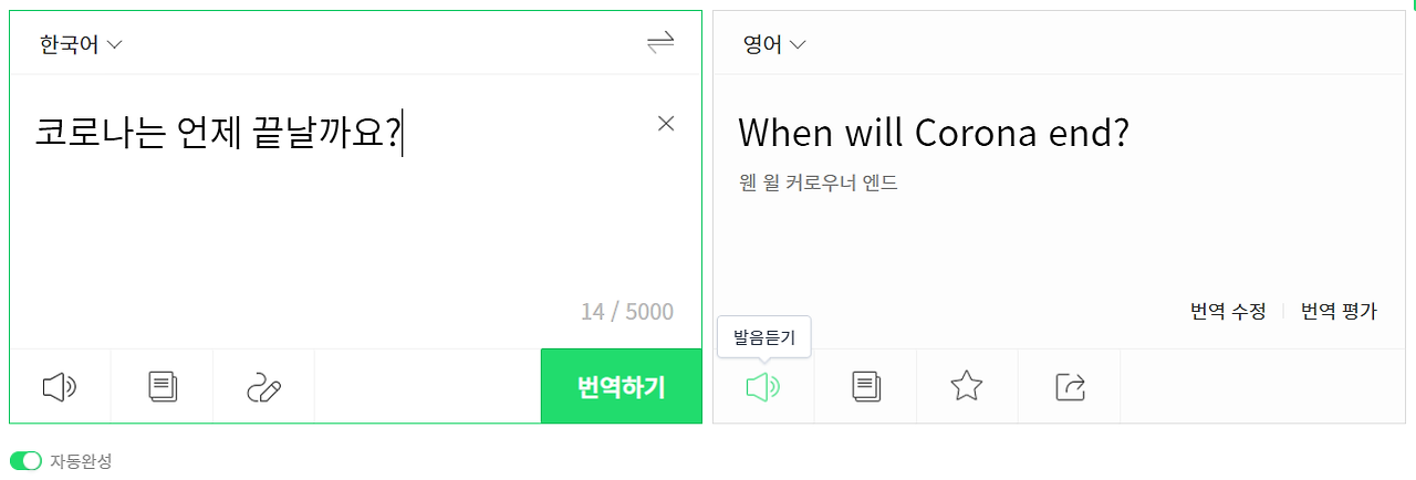 예시) “오늘의 날씨는 어떻습니까?” -> “How is the weather today”