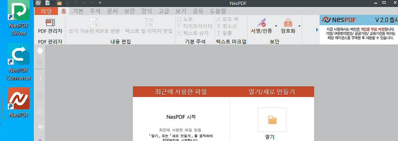 이런 경우에 유용하게 사용할 수 있는 프로그램 중 하나가 NesPDF입니다. NesPDF는 기능적인 면에서 우수한 성능을 제공합니다. 개인 사용자는 무료로 이용할 수 있으며, 기업용은 유료입니다.