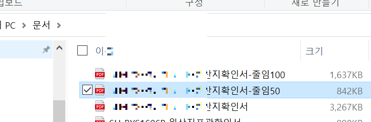 고품질과, 50 정도의 품질 수준의 파일크기 줄이기를 시도하면 아래처럼 변경됩니다.
