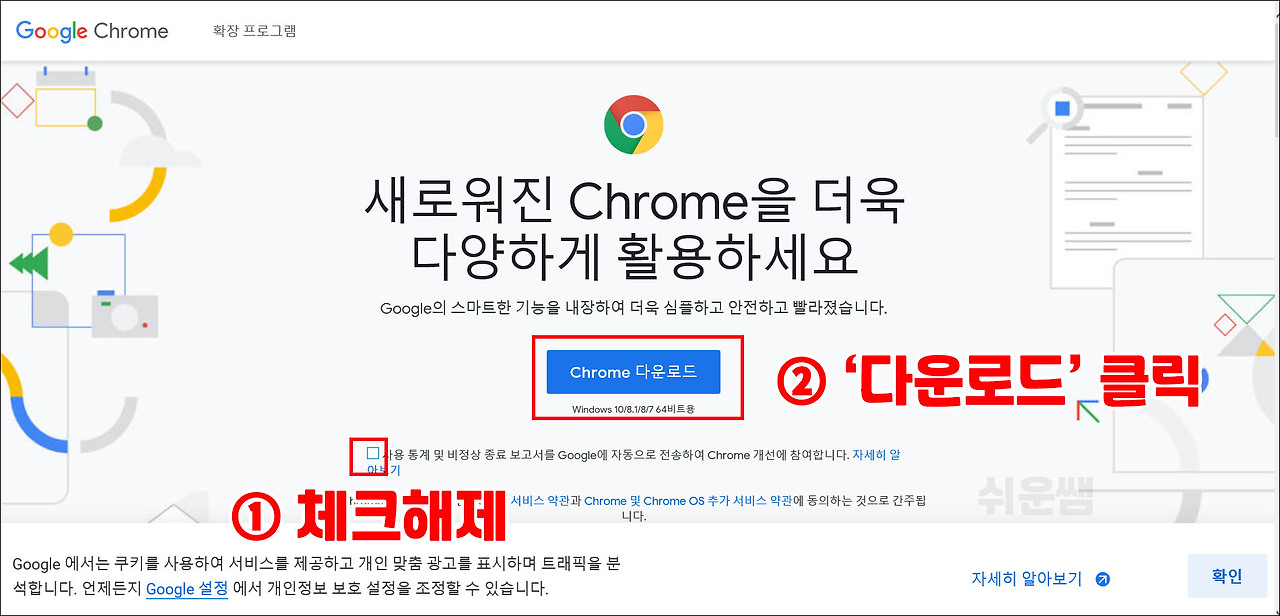 크롬 다운로드 페이지. 글로벌 기업 구글에서 만든 웹 브라우저.